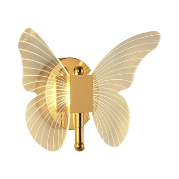 Modern Eco-friendly LED Indoor Vertical Pattern Wall Sconce 9.84in Metal Butterfly Wall Lamp Golden Color Bedroom Living Room