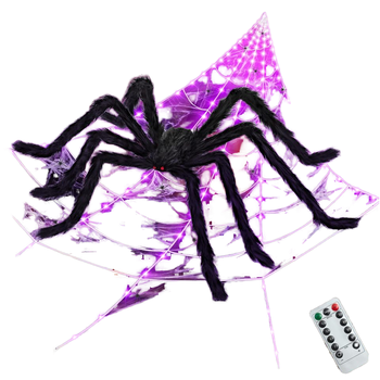 Cadılar bayramı parlayan örümcek web üçgen web işıkları ile siyah örümcek peluş boy renkli örümcek parti dekorasyon sahne